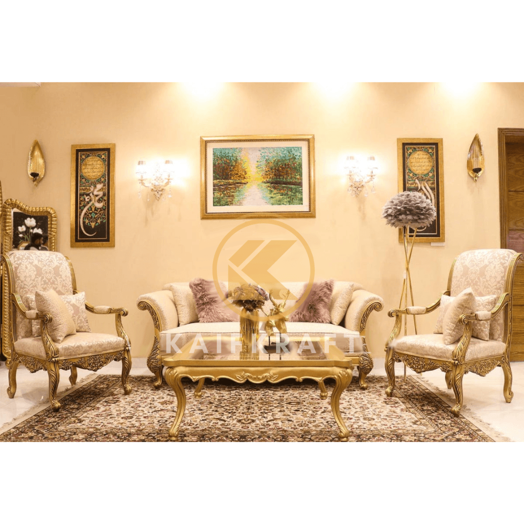 Our Gold Meraki Sofa Set is elegantly designed and expertly upholstered to give you the comfortable experience that you deserve. This piece is beautifully crafted in solid wood, in Sheesham finish.